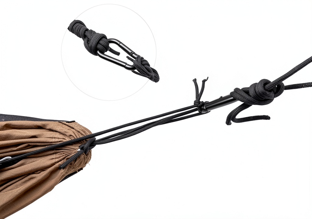 Use the assembled bungee cord loops and carabiners on both ends to secure it quickly to your hammock for a snug fit.